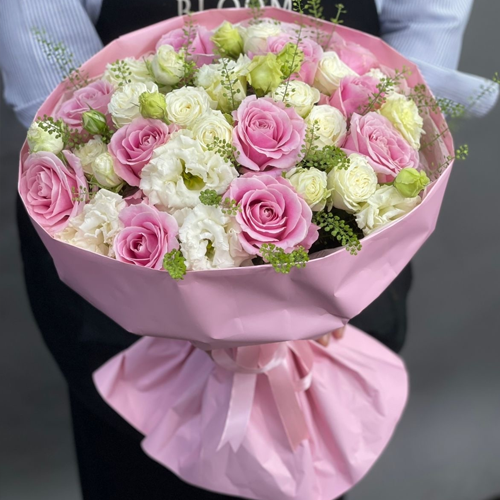 Букет "Нежное признание" из роз и эустом